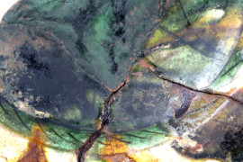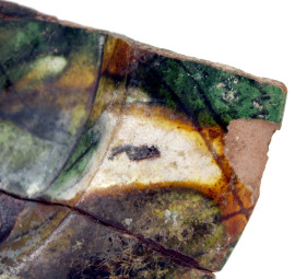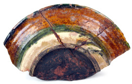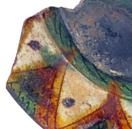 Antico frammento di piatto bizantino in terracotta con decorazione policroma, cm 27,5, (restauri e mancanze).