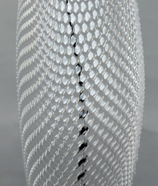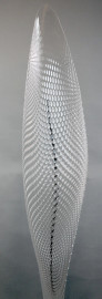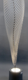 Artemide, lampada da terra modello Cosmic Leaf, struttura in acciaio cromato, corpo-diffusore in metacrilato, corpo illuminante in metallo verniciato, altezza struttura cm 192, base cm 21.