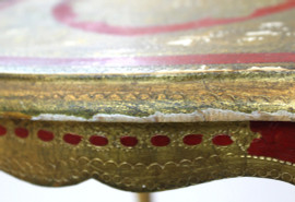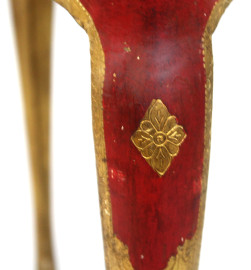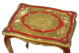 Basso tavolinetto in legno laccato e dorato con decori incisi, prima metà XX secolo, cm h 52x44x34, (usure del tempo)
