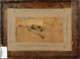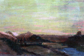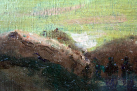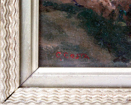 Campagna romana, olio su tavoletta, cm 14,5x25,5, firmato, entro cornice
