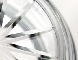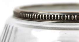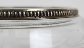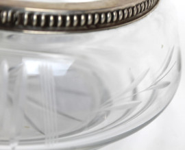 Centrotavola in cristallo controtagliato, finitura in argento, altezza cm 10, diam. cm 21, XX secolo, (lievi difetti)