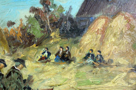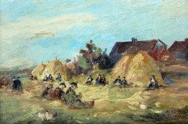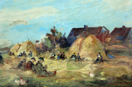 Cernita delle pannocchie, olio su masonite, cm 30x41, firmato, entro cornice