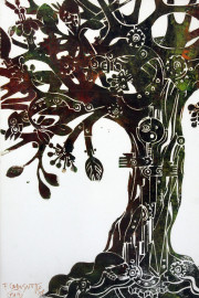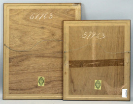 Tronchi d'alberi, due xilografie p.d.a, misure max cm 49x35, entro cornici.