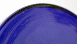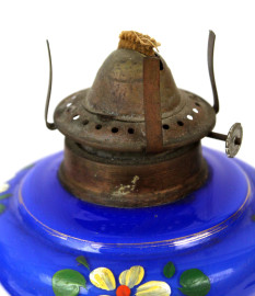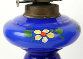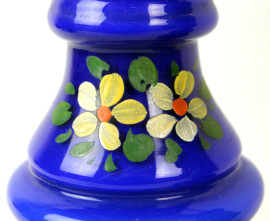 Coppia di lampade in opalina blu cobalto, decori floreali policromi dipinti a mano, cm h 31, XX secolo.