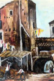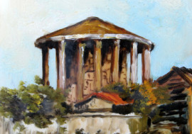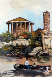 Coppia di miniature raffiguranti scorci di Roma, cm 23x17, firmate, entro cornici