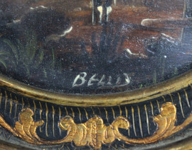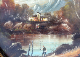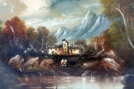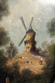 Coppia di paesaggi ad assetto ovale, olio su compensato, cm 22,5x17, firmati, entro cornici.