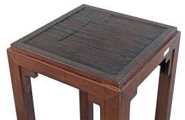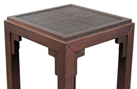 Coppia di tavolini portavaso in legno, XX secolo, cm h 96x40x40, (segni del tempo).