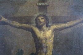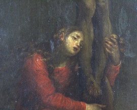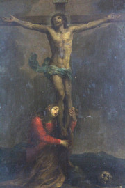 Cristo crocifisso con Maria Maddalena, olio su rame, cm 30x24,5, XVIII secolo, entro cornice.
