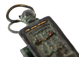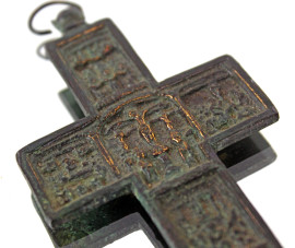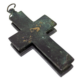 Croce da viaggio in bronzo con scene della Passione, XIX secolo, cm h 11, (difetti)