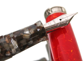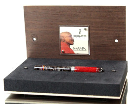 Delta Italy, Maasai Indigenous People collection, cofanetto composto da una penna stilografica con pennino 18K, finiture in argento 925 e ricarica d'inchiostro entro boccetta di vetro, lunghezza cm 14.