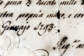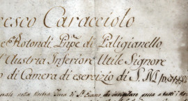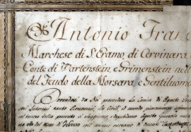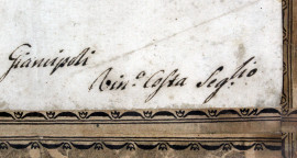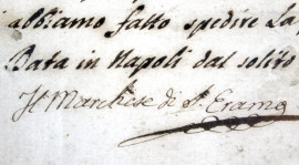 Documento manoscritto del XIX secolo, cm 33x44, entro cornice, (difetti).