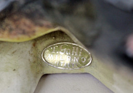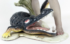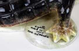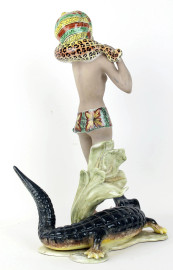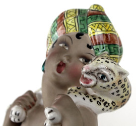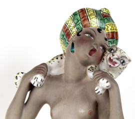 Domatrice, scultura in maiolica policroma, cm 46x27x24, firmata Tiziano Galli alla base, XX secolo, (difetti)
