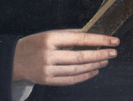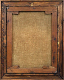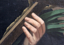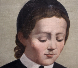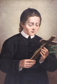 Fanciullo con Crocifisso, olio su tela, cm 80x60, fine XIX secolo, entro cornice, (lievi difetti).
