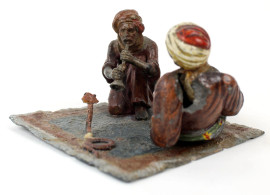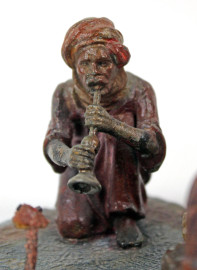 Incantatori di serpenti in metallo, cm h 7x11x11, Austria, inizi XX secolo, (difetti).