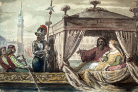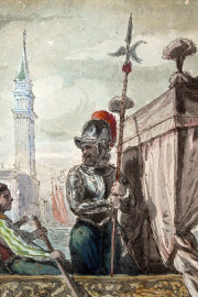In visita a Venezia, acquarello su carta, cm 25x36, firma in basso a sinistra, entro cornice