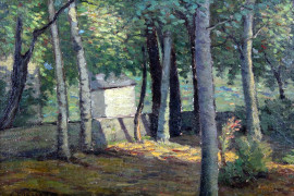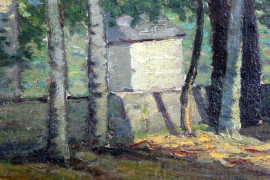 L'orto di casa, olio su cartone telato, cm 30x40, firmato, entro cornice.