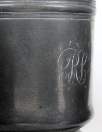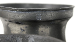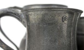 Lotto composto da due brocche e tre boccali in peltro, alt. max. cm 15, (difetti).
