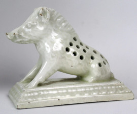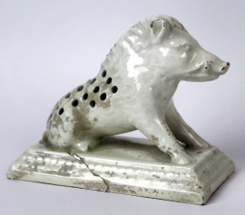 Lotto composto da un centrotavola e coppia di salierine a forma di cinghiale, in ceramica bianca, cm 30x30, XX secolo, (difetti).