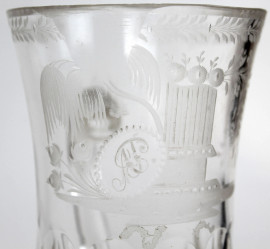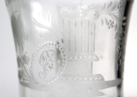 Lotto composto da un versatoio ed un boccale in vetro molato, altezza max cm 21, XX secolo, (difetti)