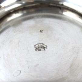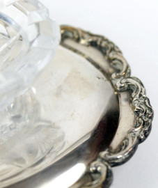 Lotto composto da un'alzata centrotavola in Sheffield e un'antipastiera in argento con vaschetta in cristallo controtagliato, misure max cm 6x15x21,XX secolo, gr. 200.