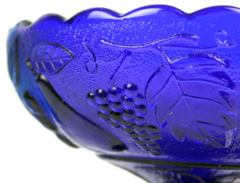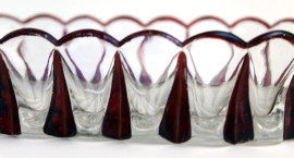 Lotto composto da un'alzatina, una bottiglia ed un centrotavola in vetro, alt. max cm 32, XX secolo.