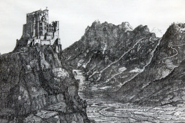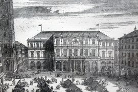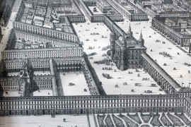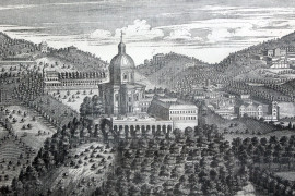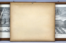 Lotto di cinque stampe raffiguranti architetture della città di Torino e dintorni, cm 28,5x33,5, entro cornici.