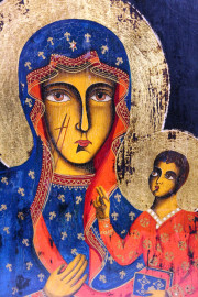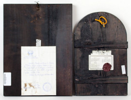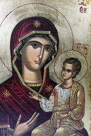 Lotto di due icone raffiguranti Madonna con Bambino, olio su tavola, misure max cm 40x30, XX secolo