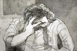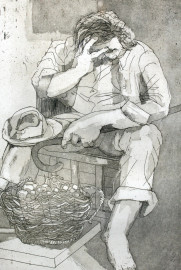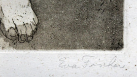 Lotto di due litografie di Eva Fischer e Alberto Sughi, misure max cm 50x70, entro cornici