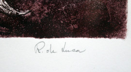 Lotto di due litografie raffiguranti tulipani e ritratto di Garibaldi di tre quarti, firmate R.de Luca e Russo, es. 5/80 e 10/90, misure max cm 34x49, entro cornici, (macchia).