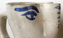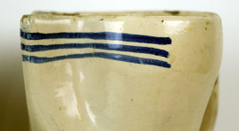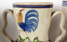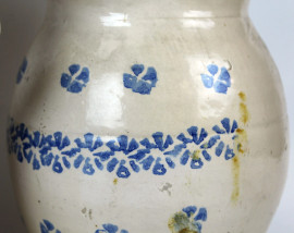 Lotto di due versatoi ed un vaso biansato in ceramica policroma, Puglia, XX secolo, alt. max cm 29, (difetti).