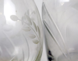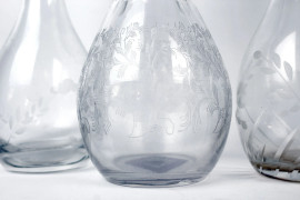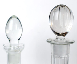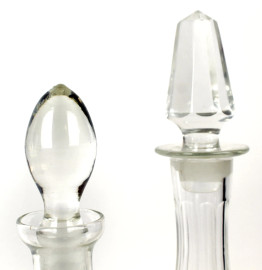 Lotto di quattro bottiglie in vetro e cristallo controtagliato, alt. max cm 39, XX secolo.