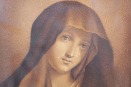 Madonna orante, stampa da Giovanni Battista Salvi detto il Sassoferrato (1609 – 1685), cm 18,5x14, XX secolo, entro cornice, (difetti).