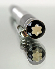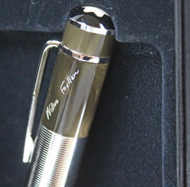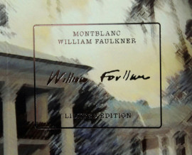 Montblanc, William Faulkner limited edition, penna stilografica in resina, pennino 18 K, lunghezza cm 14, entro cofanetto originale.