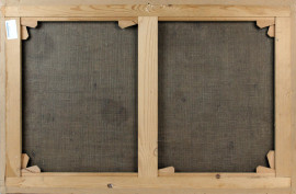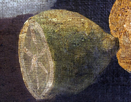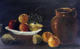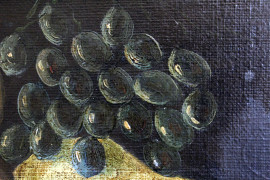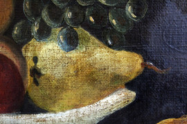 Natura morta-frutta e vasellame, olio su tela, cm 59x90,5, XX secolo