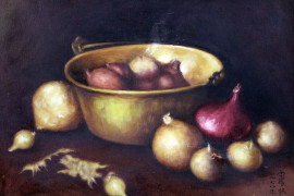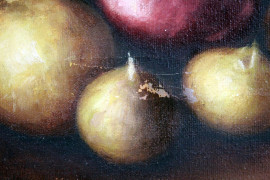 Natura morta, olio su tela, cm 24x34, firmato, entro cornice, (difetti)