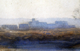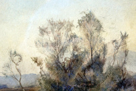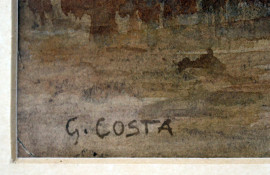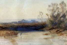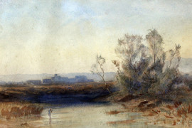 Paesaggio fluviale, acquarello su carta, cm 21x32, firmato, entro cornice, (piccoli difetti).