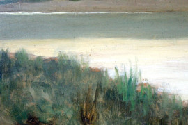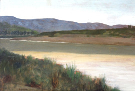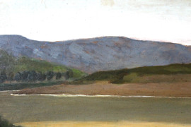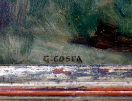Paesaggio fluviale, olio su tavola, cm 20x40,5, firmato G.Costa, entro cornice
