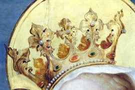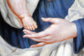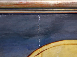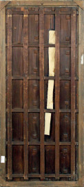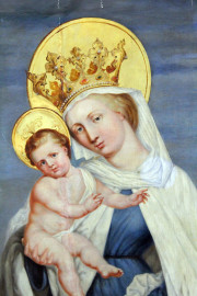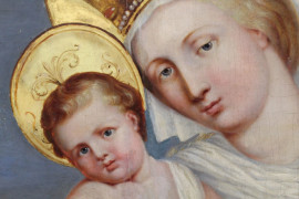 Pittore del XIX secolo, Madonna con Bambino, olio su tavola, cm 151,5x62, entro cornice