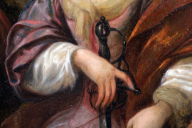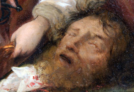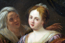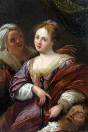 Pittore del XVII secolo, Giuditta e Oloferne, olio su rame, cm 22x17, entro cornice.