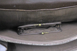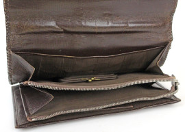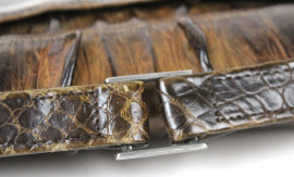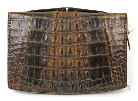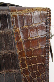 Pochette vintage in pelle di coccodrillo con manico, varie tasche e portamonete interni, cm 19x25x2,5, (segni del tempo).