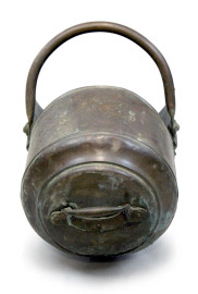 Portacarbone in rame con paletta, cm h 30x55x29, XX secolo, (difetti).