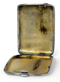 Portasigarette in argento, decori incisi, interno vermeil, Inghilterra, metà XX secolo, gr.133, (ammaccature).