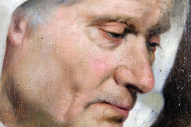 Ritratto di certosino, olio su tela, cm 43x37, siglato, entro cornice.