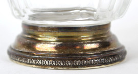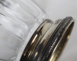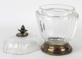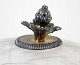 Scatola con coperchio in cristallo, base e presa in argento cesellato, cm h 16, (difetti)