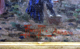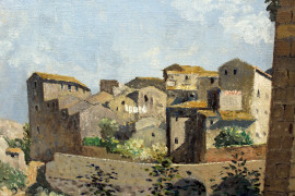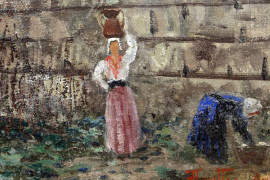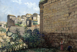 Scorcio di paese con figure, olio su tela, cm 51x65, firmato F.Anivitti, entro cornice.