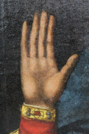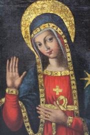 Scuola dell'Italia meridionale, XVII secolo, Madonna della stella, olio su tela, cm 67,5x49, entro cornice.