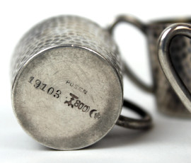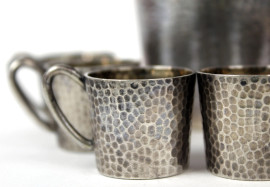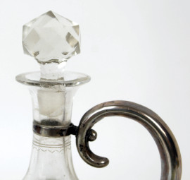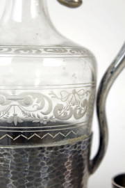 Servizio da liquore in miniatura, composto da un versatoio e sei bicchierini in vetro e argento, peso netto gr. 132, (difetti)