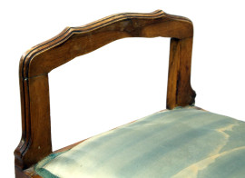 Sgabello in noce, XX secolo, seduta rivestita in raso, gambe mosse, cm h 65x54,5x42,5, (difetti e macchie alla tappezzeria).
