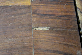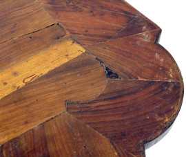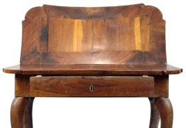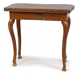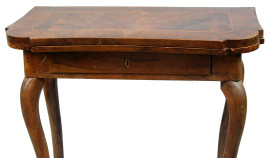 Tavolo da gioco in noce con piano a libretto, un cassetto nella fascia, gambe mosse, piedi caprini, cm 81,5x82x42,5, (piano aperto cm 85)