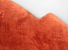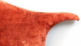 Testata di letto di linea sagomata, imbottita e rivestita in velluto rosso, cm 62x169